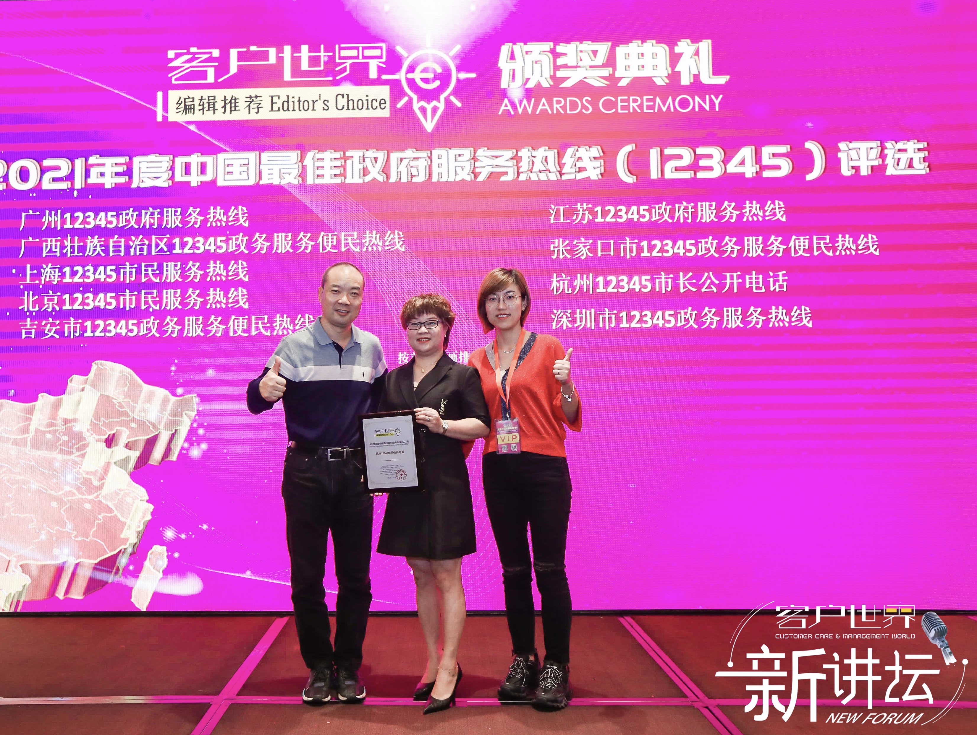 杭州市“12345”市长公开电话荣获《客户世界》编辑推荐:2021年度中国最佳政府服务热线(12345)