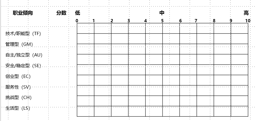 图1:职业锚测评展示表