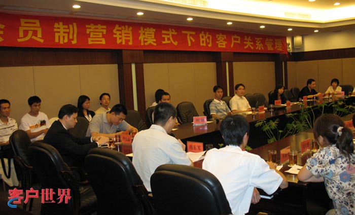 2007年7月20日,广州,[客户世界消息]:昨天,客户世界广州站的沙龙活动在皇家国际酒店成功举办。本次沙龙活动的主题是“会员制营销模式下的客户关系管理”。本次沙龙定位于跨行业的高端管理经验的交流,与会的20位嘉宾来自电信、金融、民航、汽车、物流、制药、媒体、咨询和电子商务等多个应用会员制的重点行业。正在广东进行“中国最佳呼叫中心”评选入户调查的部分专家也出席了会议。