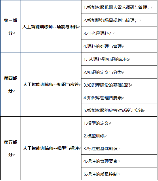 培训对象:企业已经上线智能服务产品或者筹备上线阶段、人工智能训练师基础从业人员