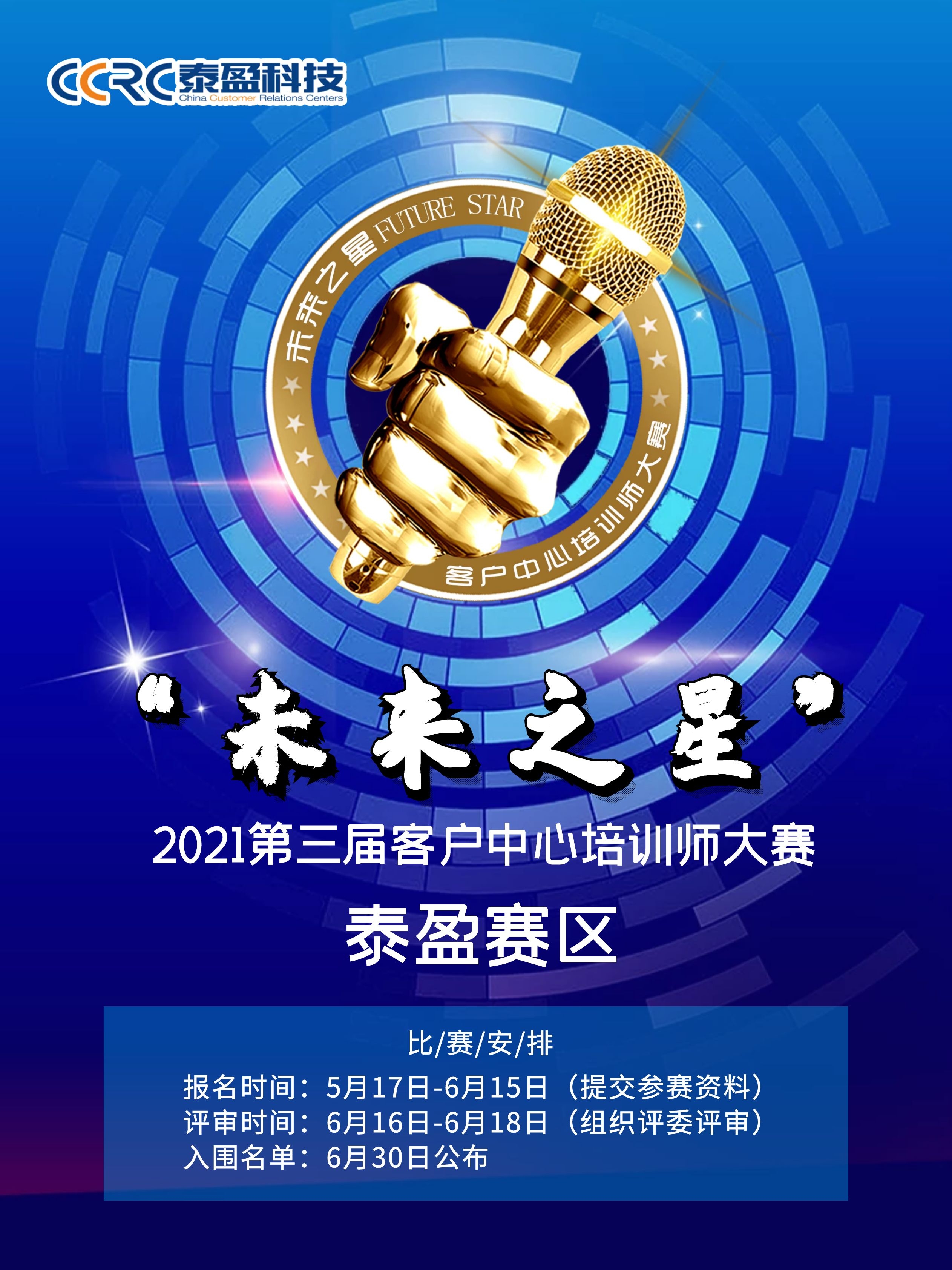 助推讲师脱颖而出,推动行业蓬勃发展。4月28日起,由客户世界机构主办,由泰盈科技(集团)承办的2021年第三届客户中心“未来之星”培训师大赛泰盈科技(集团)分赛区正式启动。本赛事面向泰盈科技集团全国所有职场的全职、兼职以及培训爱好者招募,旨在创新讲师培养模式,为培训师搭建提升专业、选拔展示的舞台,进一步打造学习型组织、提升我司核心竞争力。
