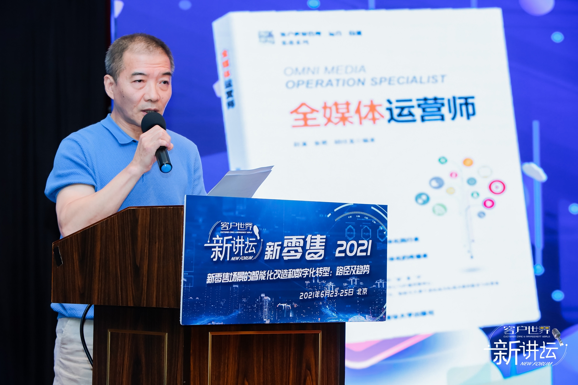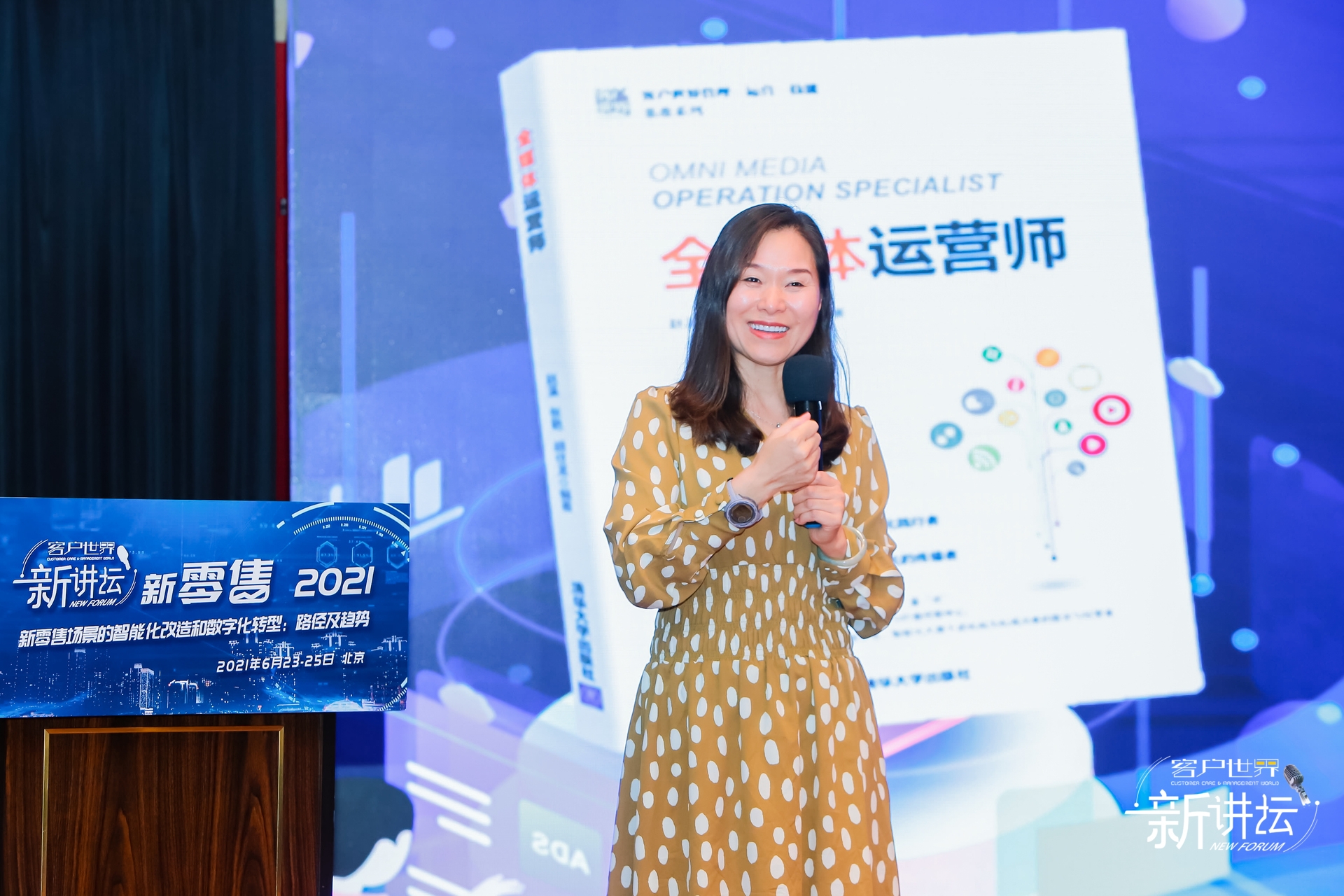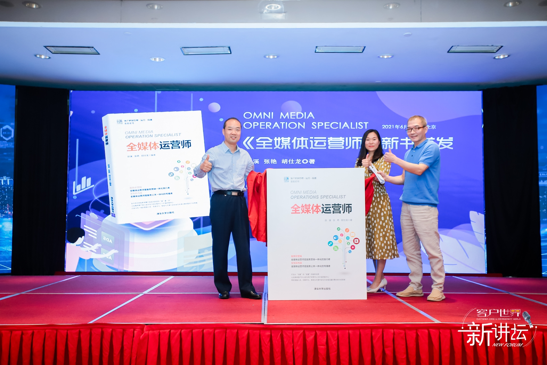2021年6月23日,北京。客户世界消息:今天,“客户世界 • 新讲坛:新零售2021”在北京丽景湾国际酒店举行,期间发布了行业新书《全媒体运营师》。清华大学出版社经管分社社长徐学军出席活动并致辞;本书作者赵溪、张艳出席活动。