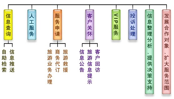 对于旅游企业提供的各种功能服务(包括旅游业务、预订业务等),都可以通过旅游机构的呼叫中心系统进行申请,摒弃繁琐的申请过程,使用户在第一时间得到优质的服务。