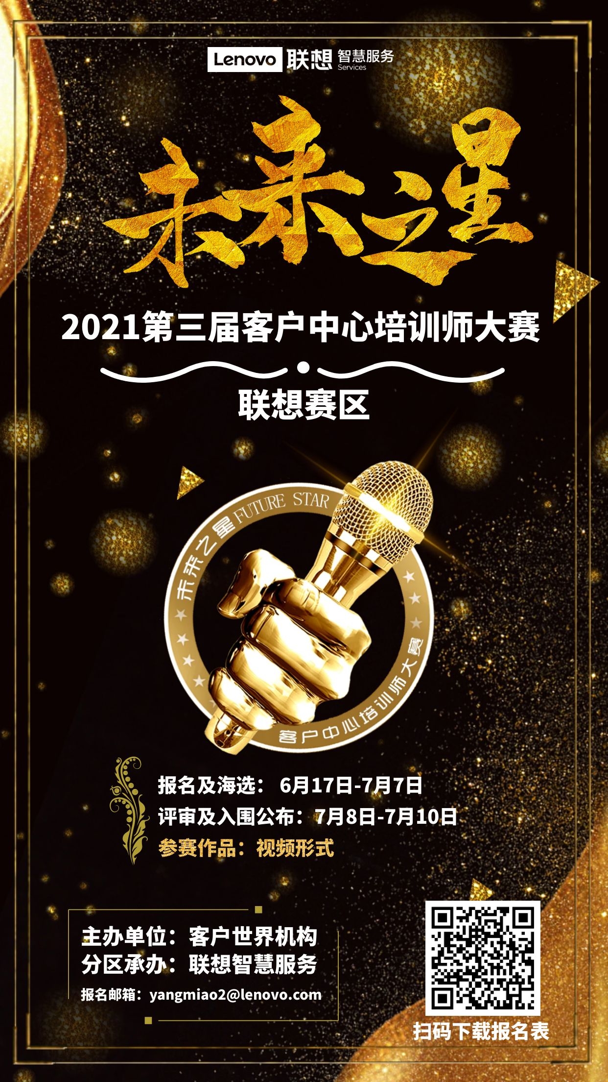 助推讲师脱颖而出,推动行业蓬勃发展。4月28日起,由客户世界机构主办,由联想承办的2021年第三届客户中心“未来之星”培训师大赛联想分赛区正式启动。本赛事面向联想所有职场的培训师及培训爱好者招募,旨在创新讲师培养模式,为培训师搭建提升专业、选拔展示的舞台,进一步打造学习型组织、提升我司核心竞争力。