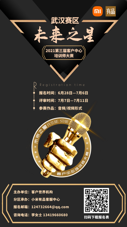 第三届“未来之星”大赛武汉赛区即将开始报名,小米有品客服中心将作为武汉赛区的主办单位,组织开展武汉赛区比赛。我们希望有更多呼叫中心行业培训师能踊跃参与,通过比赛相互学习,共同成长,彰显培训魅力,展现行业风采。