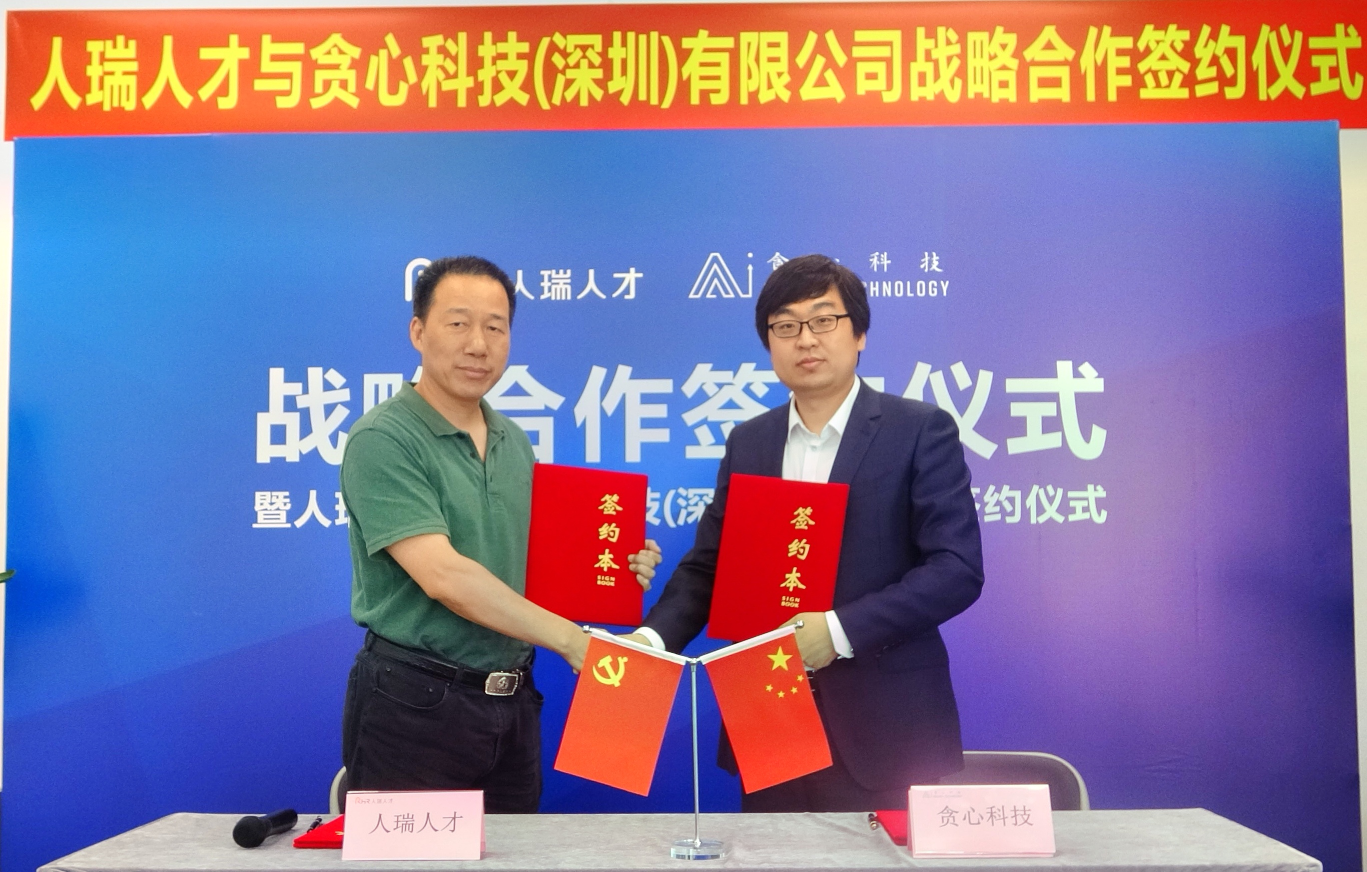 人瑞人才与贪心科技签约现场