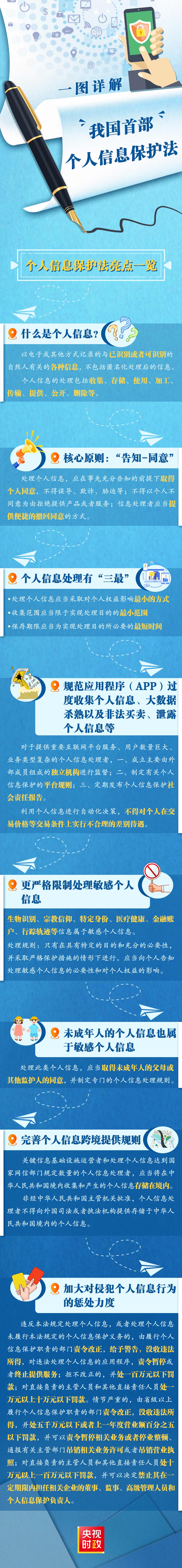 明确不得过度收集个人信息、大数据杀熟,对人脸信息等敏感个人信息的处理作出规制,完善个人信息保护投诉、举报工作机制……这部专门法律充分回应了社会关切,为破解个人信息保护中的热点难点问题提供了强有力的法律保障。