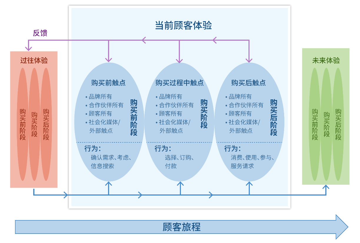 与顾客满意相比,顾客体验的概念比顾客满意要广。顾客体验的全过程包括顾客的过往体验、当前体验和未来体验,如图1所示。