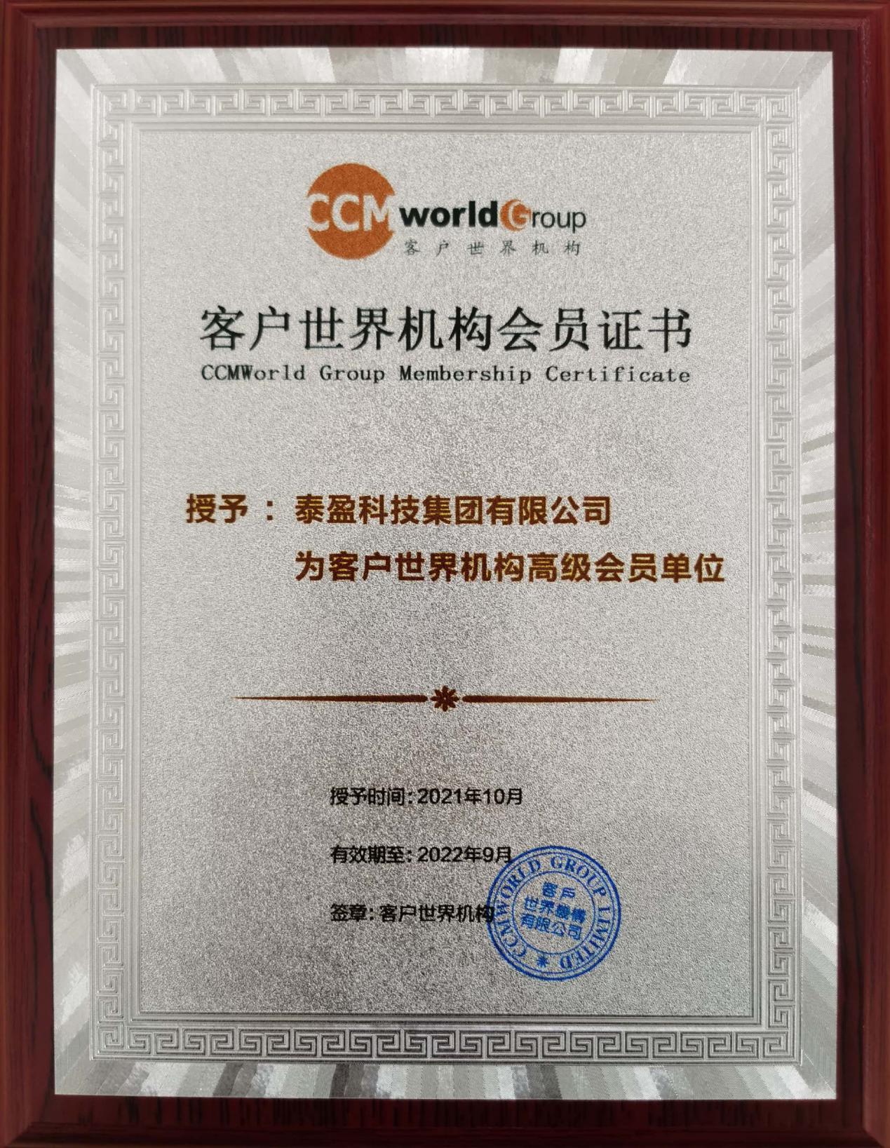 客户世界机构高级会员证书