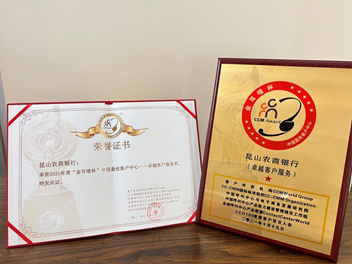 昆山农商银行客服中心首次荣获年度“卓越客户服务”奖项。