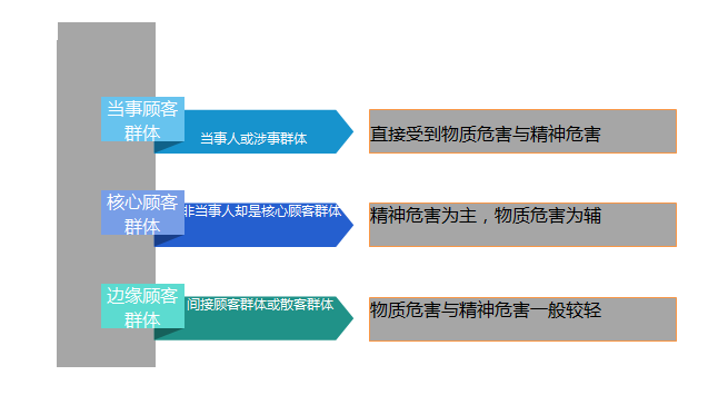 然而,问题产品或服务的受害者未必一人,同一问题投诉可能群体化。顾客受害程度不同,群体特征与危害表现也不同,见图2。因此,社区电商在“解毒”时,要有一个合理的逻辑:先“解毒”当事顾客群体,再“解毒”核心顾客群体,最后“解毒”边缘顾客群体。
