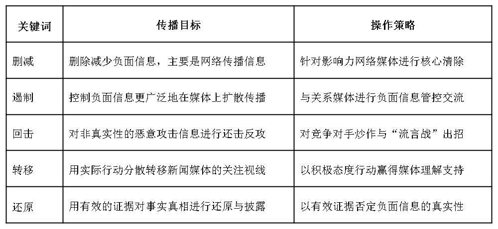 在解决顾客诉求之后,信息战走向前台,通过正面信息诉求引导,使社区电商从负面信息的漩涡中走出来。社区电商应进行积极而正面的信息沟通,首要用正确且正面信息传播去消解负面信息带来的不良影响。信息“解毒”的关键是去毒(祛除负面信息)、控毒(防止负面信息蔓延)、抑毒(用正面信息抑制负面信息)、化毒(用事实真相让揭穿负面信息的谎言)。对此,可用五个关键词来概括,见表2。