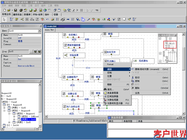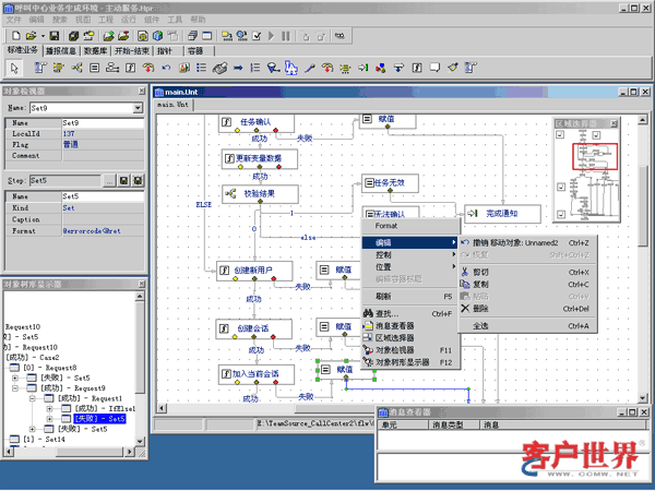 IVR图形化流程配置工具 :CallConfig是一个图形界面的业务流程编辑工具。借助于CallConfig,业务人员通过鼠标的点击和拖放等操作便能轻轻松松创建复杂的流程。