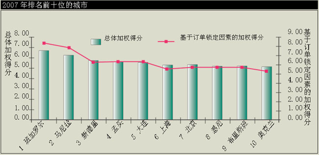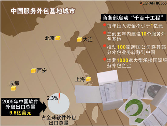 IDC 7月发布的一个报告称,到2011年,中国城市将会超越印度成为更适宜离岸外包的地点,其原因是中国大力投资基础设施,提高人才的英语和技术技能,改善互联网条件。
