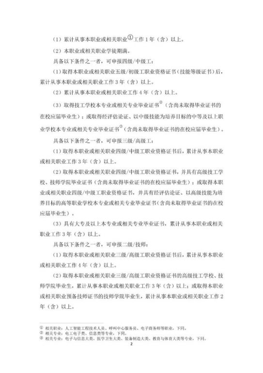 本职业共设5个等级,分别为:五级/初级工、四级/中级工、三级/高级工、二级/技师、一级/高级技师。