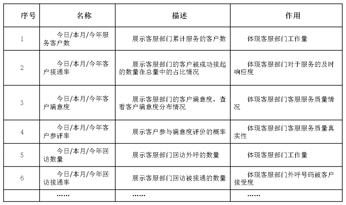 那么聚焦到客户服务部门可以选择数据有哪些呢?根据我们在多个项目中实践的经验我们认为可以展示如下数据: