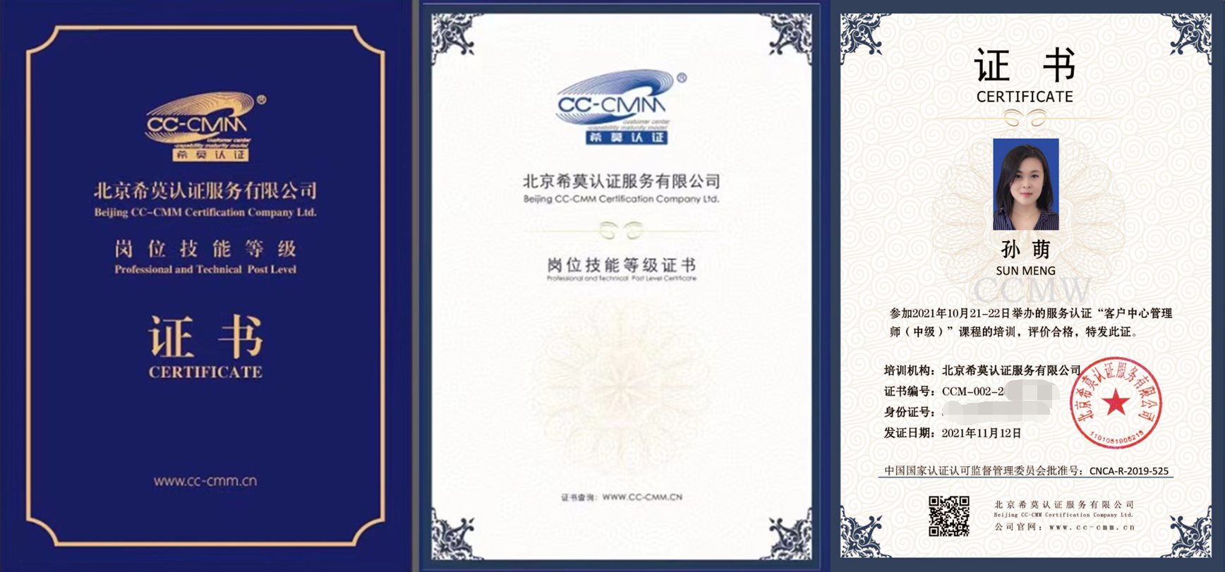 认证培训项目由“北京希莫认证服务有限公司”(希莫认证)按照国家规范实施认证。“希莫认证”是由“国家认证认可监督管理委员会”批准设立的专业认证机构(批准号:CNCA-R-2019-525)。北京希莫认证服务有限公司是经国家认监委审批、授权、并颁发资质证书的合法认证机构,在国家市场监督管理总局的监管下,从事呼叫中心服务认证业务。