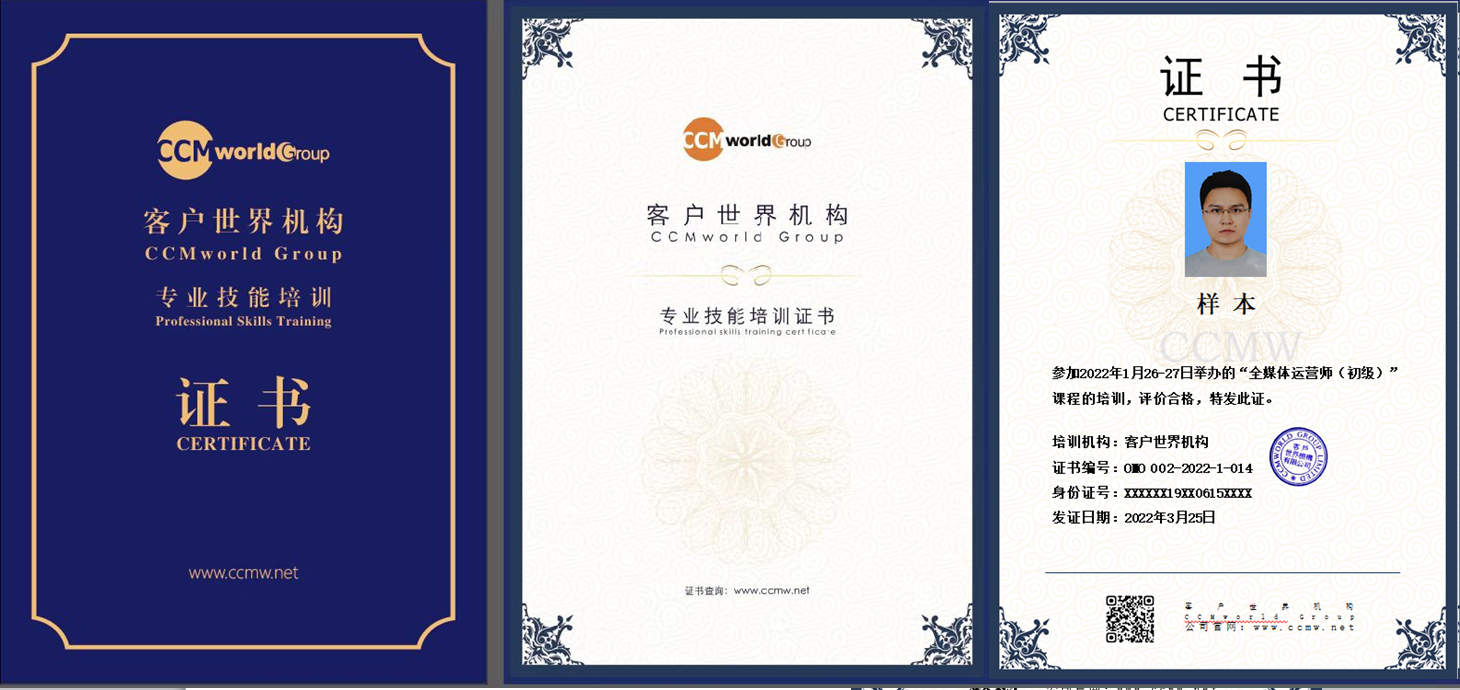 3、通过考试可获得全媒体学员通过考试可获得中国认证认可委授权认证服务企业颁发全媒体运营师证书,含金量高,可满足多维度需求的全媒体运营师岗位能力证书。