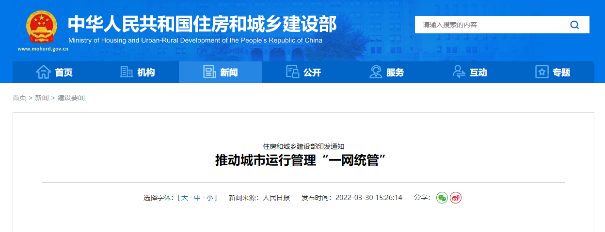 转载请注明来源:住建部:推动城市运行管理“一网统管”