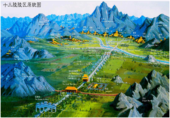 明十三陵是明朝迁都北京后13位皇帝陵墓的皇家陵寝的总称,依次建有长陵(成祖)、献陵(仁宗)、景陵(宣宗)、裕陵(英宗)、茂陵(宪宗)、泰陵(孝宗)、康陵(武宗)、永陵(世宗)、昭陵(穆宗)、定陵(神宗)、庆陵(光宗)、德陵(熹宗)、思陵(思宗),故称十三陵。景区已开放景点有长陵、定陵、昭陵、神路,是中国乃至世界现存规模最大、帝后陵寝最多的一处皇陵建筑群。