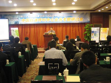 作为本次会议的主办方之一,北京华铁广通电信技术有限公司在会上向大家介绍了其呼叫中心业务,作为新一代“整合型、节约型”呼叫中心,华铁广通为其整合了强大的功能,依托铁通覆盖全国300多个行政区域的骨干网络,开通了全国统一的特服号码。通过平台外包的运营模式,使企业零成本拥有自己的呼叫中心成为可能。