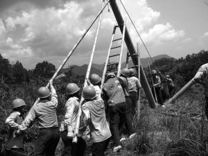 在深山中架设电力线路 |