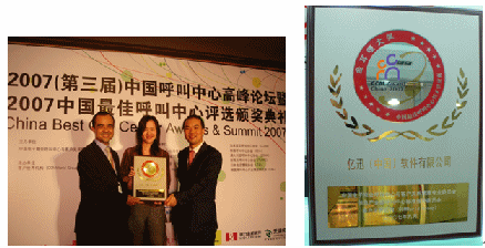 中国(亚太)最佳呼叫中心2007年度系列奖项已于目前揭晓,亿迅(中国)软件有限公司获得了“中国最佳呼叫中心技术供应商”奖项。
