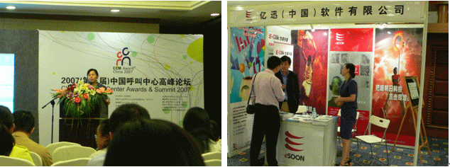 在颁奖晚宴的同时9月18-19日召开了2007中国呼叫中心高峰论坛,亿迅参加了大会,并做了关于外呼营销活动的策略与实战运用方面的演讲,受到与会嘉宾的一致好评。在会场外,亿迅公司的展位前面也是人头攒动,大家对亿迅的产品很感兴趣,纷纷前来咨询。