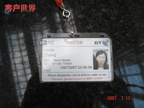 参观英国电信(British Telecom )访客胸卡 |