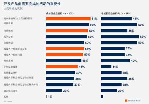 (3)有条理的产品评估:成长型企业的产品经理在评估产品潜力时,会采取更为系统化的方法,确保产品创意在投入大量资源之前已经被充分验证。他们愿意花更多的时间在面向市场的活动中,确保产品真正满足市场需求。