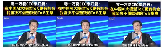 零一万物CEO李开复在2024年智源大会访谈中,认为在中国AI大模型在2C市场更有机会,当前并不看好中国2B市场的发展,理由和文中第一部分“前世今朝:行业困境与服务割裂”类似,价格战和低水平交付会带来恶性循环。