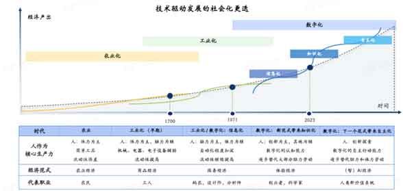 从农业时代到信息化时代,人类社会经历了深刻的变革,每一次转型都伴随着劳动力结构和生产方式的重大变化。这一系列的变化不仅是技术进步的结果,也是社会结构、经济模式乃至人们生活方式的根本转变。随着技术的不断进步,未来可能会出现新的职业形态和社会分工。