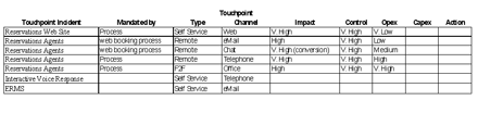 步骤6. 到此为止,许多接触点事件可能有多种接触点类型和渠道。例如,航空公司的乘客可能选择电话、电子邮件或传真预定航班。这接下来的步骤可能是最困难的一步,因为它要求企业内众多部门的共同参与。这个步骤是对接触点于企业贡献度(收入,保留率,客户满意度,风险,等等) 的评估。需要注意的是某个接触点事件中糟糕的服务体验其影响力可能因具体承载渠道的不同而大相迥异。比如说移动电话断线的影响要远小于固定电话断线。同样的,客户对电子邮件服务的容忍度通常都要大于电话服务。