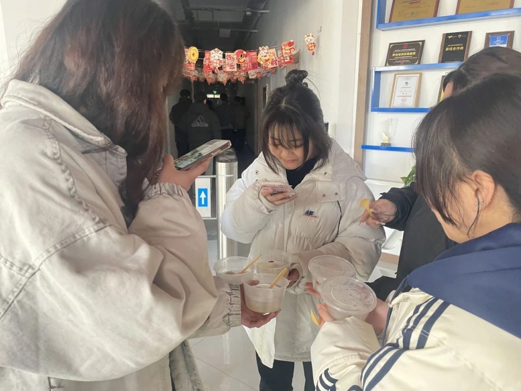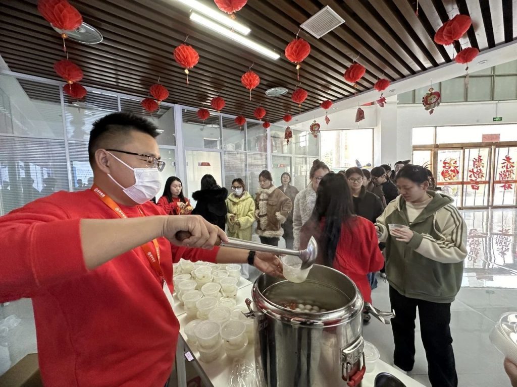 “来,小心烫,慢慢吃。”教育培训中心区域运营总监万鹏飞老师一边为学生们盛汤圆,一边轻声叮嘱。一碗碗热气腾腾的汤圆,不仅驱散了冬日的寒意,更寄托着老师们对学生的殷切期望和美好祝福。