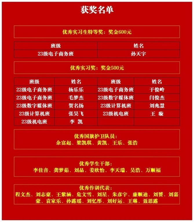 紧接着,学生表彰环节将现场气氛推向了高潮。主持人逐一宣读“一等奖”、“二等奖”、“三等奖”以及“优秀作训代表”、“优秀学生干部”等获奖名单。