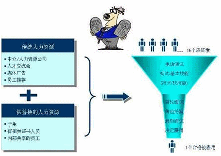 以上是图是我们通常的标准招募流程图,从电话测试,基本技能,技术/软技能到首轮面试,角色扮演,最后面试。应该说这些招募流程是一个都不能少,但真正能够一丝不苟地执行的企业却又不多。也许是因为时间紧,也许是怕烦,也许是因为其它…..总之省了很多工序,只要用人部门负责人和应聘者“对眼”了就行。岂不知,这样招来的人,很多是心不稳或不合用的,注定很快要走的。人走了还得招,招来了又走了,注定劳碌命,吃力不讨好。