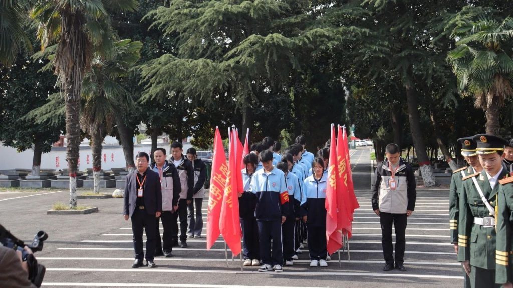 活动在庄严肃穆的氛围中拉开序幕。国旗护卫队高举校旗、团旗,引领全体师生列队缓步走向烈士纪念碑。晨光中,队伍步伐铿锵,神情庄重,仿佛穿越时空与先烈对话。全体人员肃立碑前,向长眠于此的革命先烈致以最崇高的敬意。