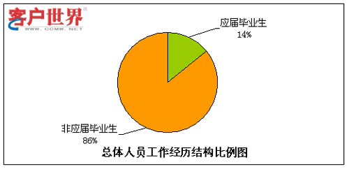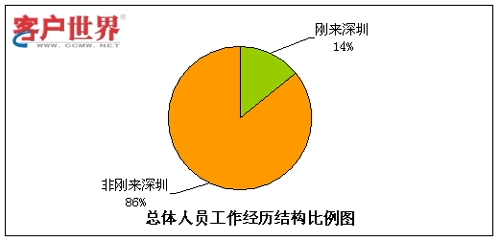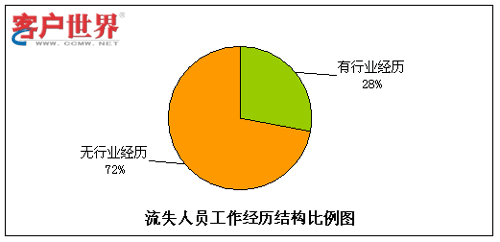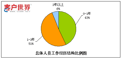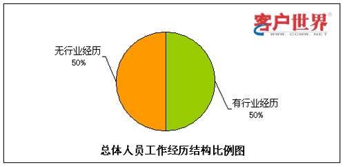 呼叫中心由于高压力、24小时轮班等工作特性,有相当比例的流失是因为不适应工作环境而导致的,其中一个主要原因就是新入职员工想象中的工作环境和现实情况大相径庭。而有呼叫中心工作经验的员工对于这点的适应性相对较强,因此我们对呼叫中心员工是否有行业经历方面的情况进行了统计分析。