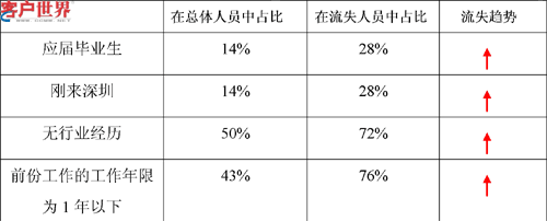 2、其中试用期内的流失人数占了总流失人数的41.3%