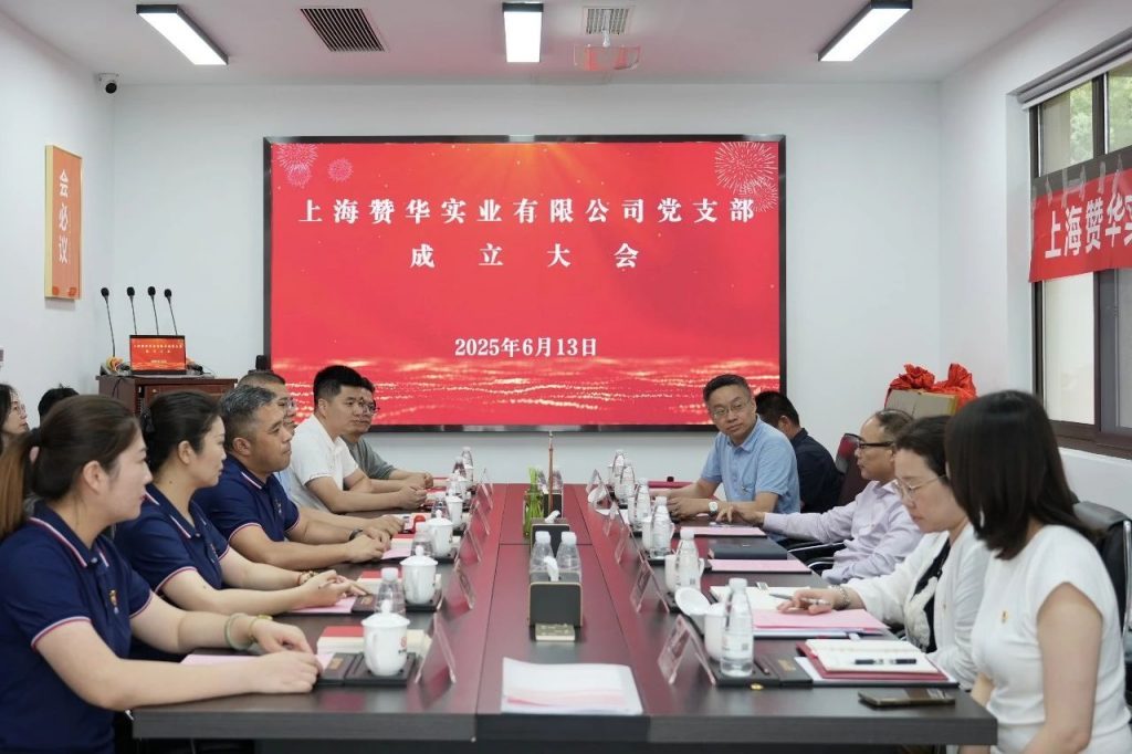 2025年6月13日,赞华集团会议室内(灵山路2000弄56号)气氛庄重而热烈,中国共产党上海赞华实业有限公司支部成立大会在此隆重召开。