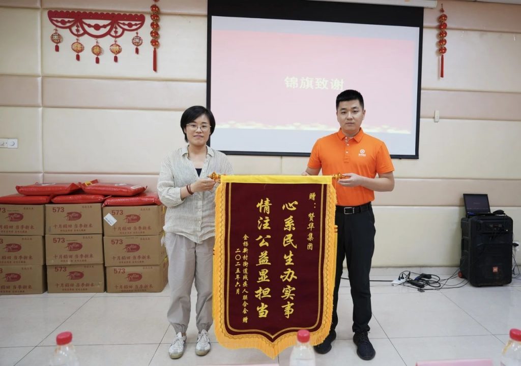 赞华集团精心筹备的爱心物资,满含对学员的关怀与祝福。物资递到学员手中时,他们脸上幸福的笑容,是对这份温暖最生动的回应。金杨新村街道社区服务办副主任沈勤代表街道残联,向赞华集团赠送锦旗,以表诚挚谢意。赞华集团以实际行动勇担社会责任,尽显优秀企业格局,期待以此次共建为新起点,凝聚各方力量,让阳光家园成员尽享社会温暖。