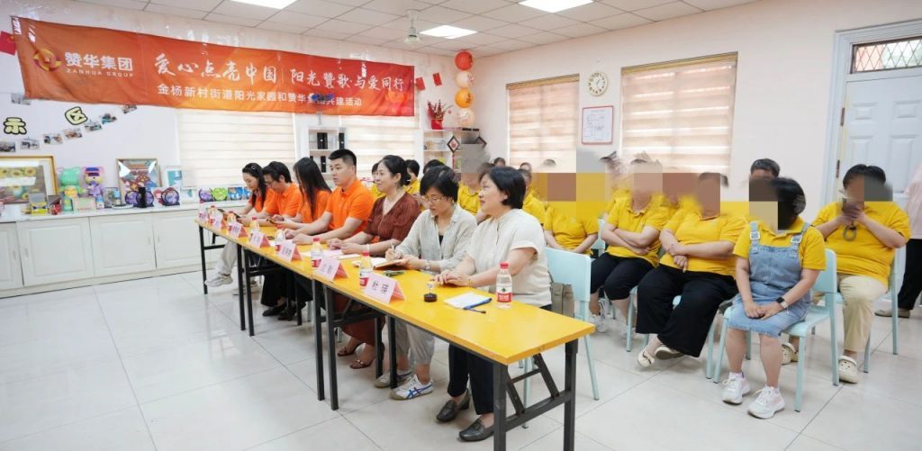 6月30日下午,一场残联公益共建活动在金杨新村街道阳光家园温情举行。金杨新村街道社区服务办主任 、残疾人联合会理事长延海荣,金杨新村街道社区服务办副主任沈勤,上海乐爱社工师事务所总干事杜瑛,赞华集团代表——公共关系中心副总经理肖宾、市场品牌中心代表、技术共享中心代表和公共关系中心代表等共同出席。