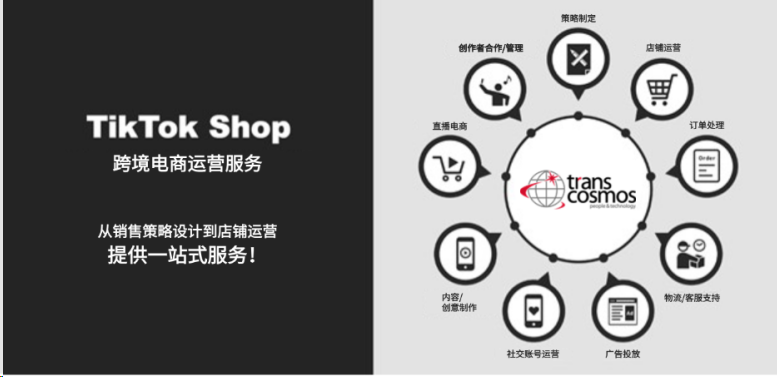 transcosmos推出TikTok Shop跨境电商运营服务从销售策略、店铺运营、物流到创作者支持,为品牌方提供一站式的社交电商服务