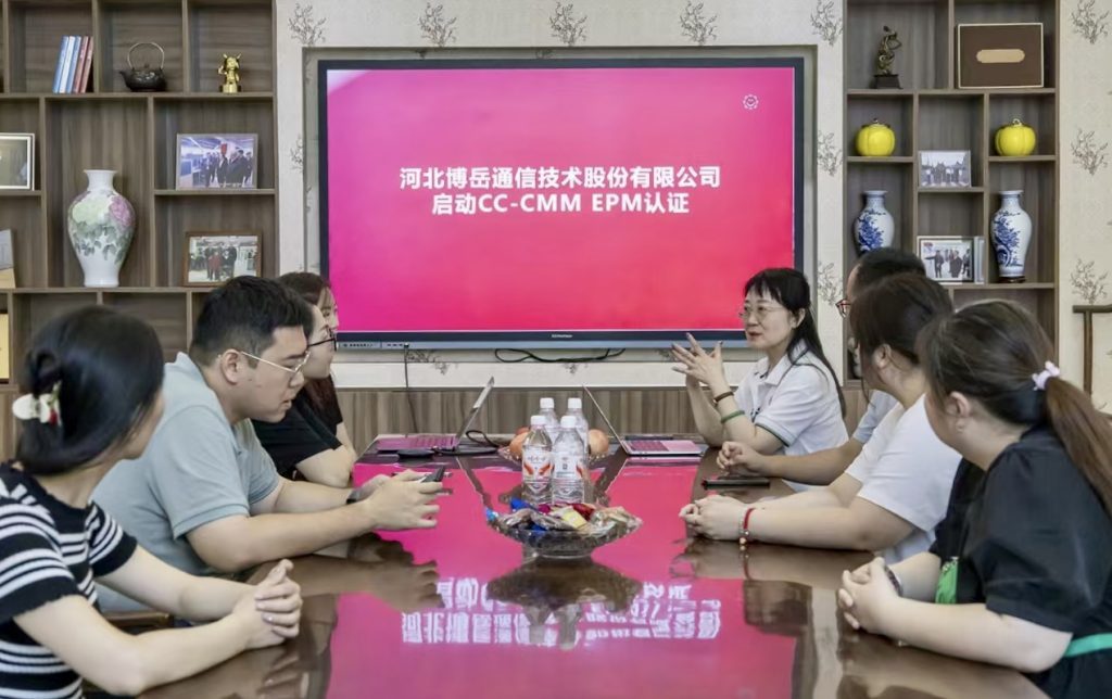 2025 年8月5-6 日,石家庄。客户世界消息:河北博岳通信技术股份有限公司(以下简称 “博岳通信”)今日正式宣布接轨 CC-CMM 标准 EPM 认证,项目管理会议在河北省石家庄市博岳通信公司总部举行。希莫标准组织执行委员、CC-CMM 高级咨询顾问葛梅女士作为项目负责人主持了该项目的评审和辅导工作;博岳通信公司领导、业务主管及运营负责人共同参与了项目实施全过程。