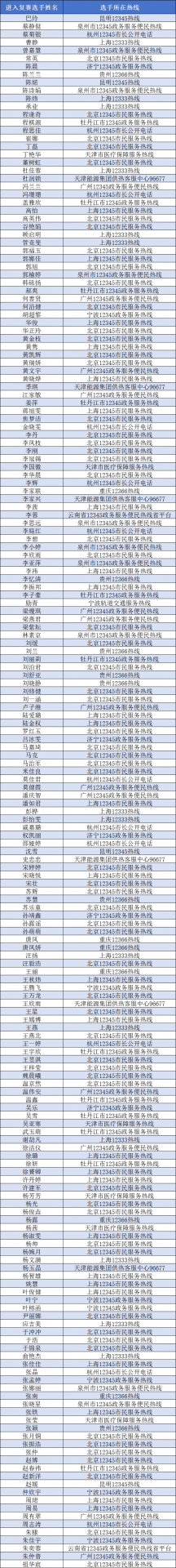 截止到6月30日,本次大赛共有超过60条热线,近600名选手报名参加。最终进入复赛环节人员信息请参见下表(根据首字母排名):