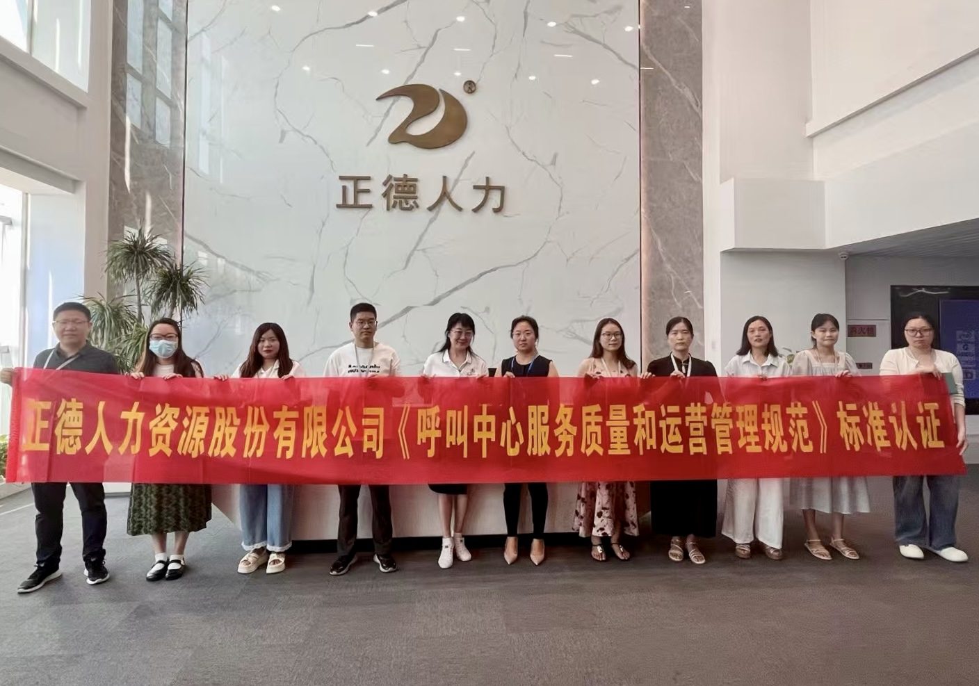 正德人力通过《呼叫中心服务质量和运营管理规范》标准认证