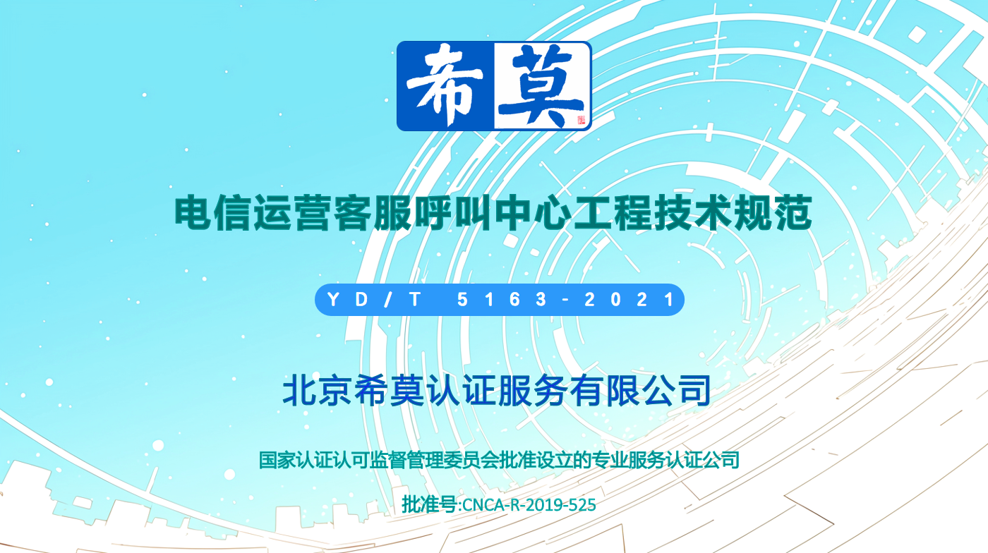 北京希莫认证服务有限公司(CMM Certification)是一家专门从事服务认证的专业认证机构,其认证领域涉及电信服务、信息检索及数字运营等范畴。是经国家认证认可监督管理委员会审批、授权、并颁发资质证书的合法认证机构(批准号:CNCA-R-2019-525),在国家市场监督管理总局的监管下,从事国标服务认证业务。北京希莫认证服务有限公司按国家认监委要求,从事认证的人员均为考试合格,并在国家认证认可协会备案,具有国家服务认证审查员资质的CCAA审查员。