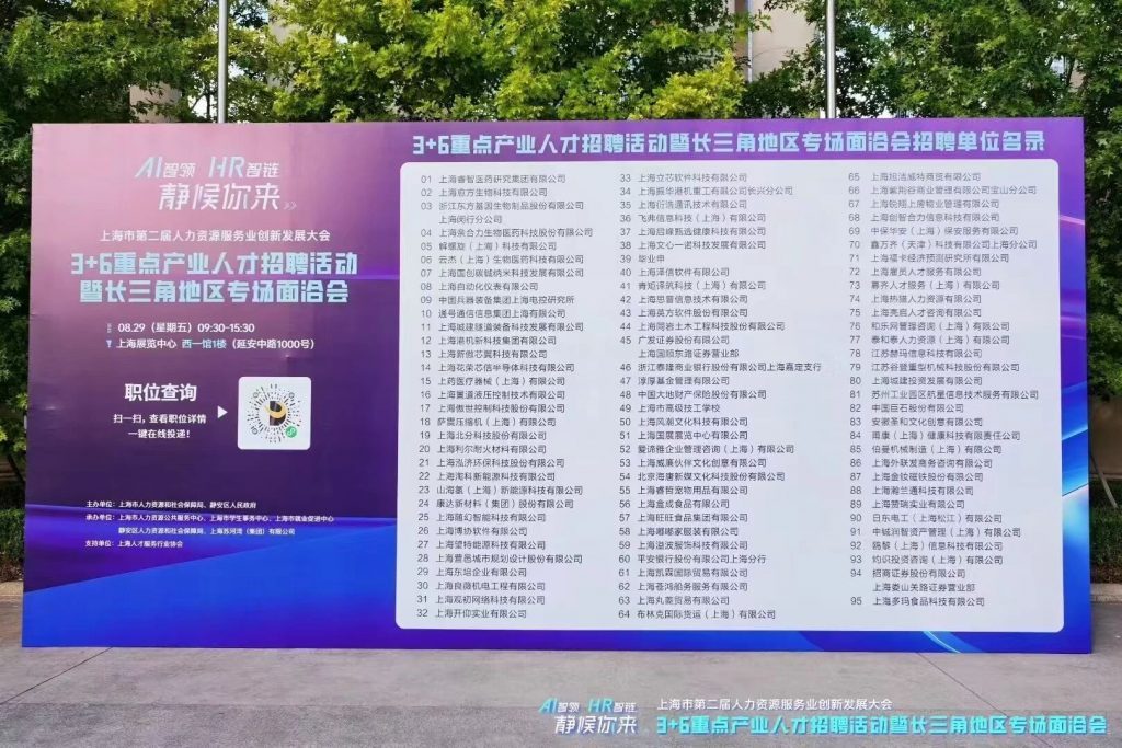 8 月 29 日,上海市第二届人力资源服务业创新发展大会在上海展览中心中央大厅圆满举办。作为国内全方位人力资源服务运营商,赞华集团受邀参会,全程聚焦上海 “3+6” 重点产业的人力资源核心需求,通过精准对接洽谈,以务实服务为产业发展匹配优质资源,以技术创新助力企业人力资源服务模式升级,深度践行大会 “推动产才融合” 的核心目标。