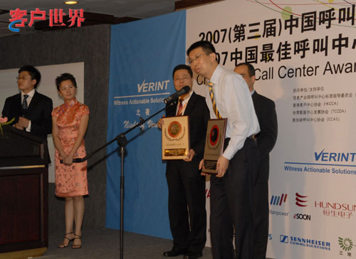 近日,中国第三届呼叫中心高峰论坛在北京金域万豪酒店隆重召开。来自10多个国家和地区呼叫中心行业的顶级专家、呼叫中心软硬件提供商、以及覆盖各行各业的用户齐聚于此,共同就“融合与创新——全球化背景下的呼叫中心产业”展开讨论。此次峰会正式公布了由信息产业部(MIICCOS)、中国电子商会(CNCCA)共同评选的2007年度中国最佳呼叫中心奖项。在Call Center和CRM行业中的领军企业HOLLYCRM(合力金桥软件)凭借十年呼叫中心软件研发和项目实施经验并进行不断的技术探索,荣获了“中国最佳呼叫中心技术供应商”大奖。