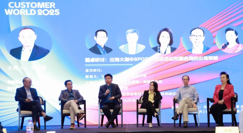 会议的圆桌研讨环节成为大会亮点,由丰祖军(菲律宾SixEleven BPO 全球客户解决方案副总裁)主持,陈福义(马来西亚电子商务协会主席)、袁达文(客户体验大学 CX University 亚太区首席执行官)、王德宝(泰盈科技集团执行董事、高级副总裁)、张辉(万声集团副总经理)、黄锦铨(transcosmos 大宇宙集团全球业务拓展部副总经理)、廖黛丽(深圳市呼叫中心行业协会会长)等六位跨国行业专家,围绕 “出海大潮中 BPO 行业的生态位和服务商的出海策略” 展开跨界对话。嘉宾们结合各自实践经验,深入剖析 AI 时代 “智力即服务” 的外包新模式,探讨平台型服务商的战略定位与跨境服务生态构建路径,为中国服务企业全球化布局提供宝贵思路。